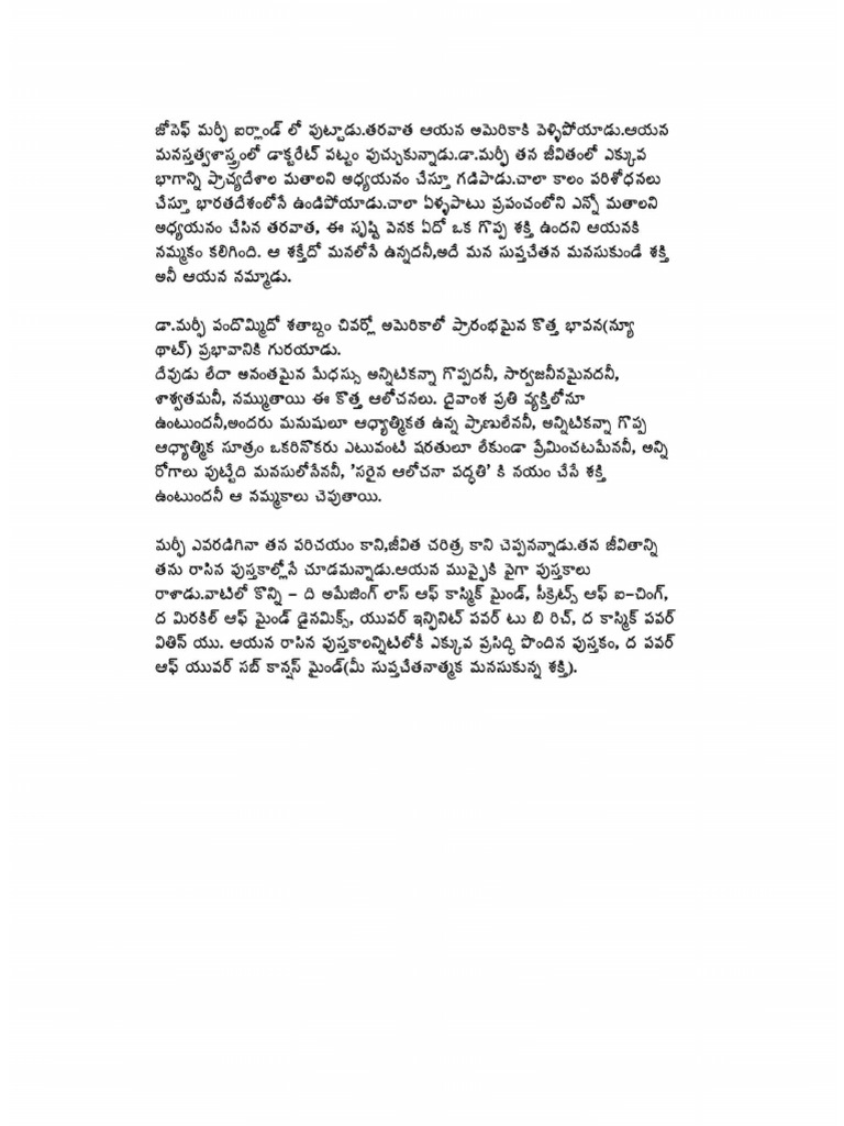 The Power Of Your Subconscious Mind Telugu By Joseph Murphy Pdf